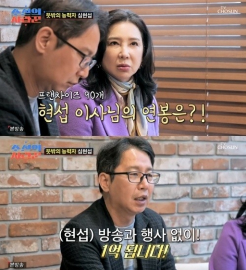 심현섭은 방송을 하지 않고도 연봉 1억이라고 공개해 심현섭 재산이 화제가 되었어요. 현재 전국적으로 90개 매장 있는 돈가스 프랜차이즈 업체 이사로 재직하고 있으며, 섬도 있고, 땅도 있다고 알려졌어요.