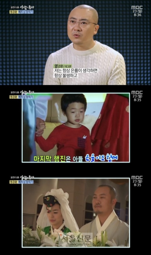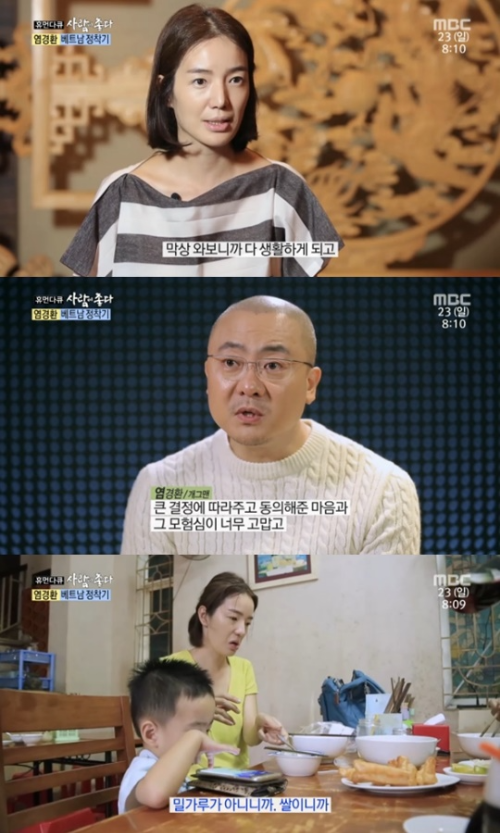 다른 나라로 이민 가는 게 큰 결정인데, 잘 따라와 주고 동의해 준 아내의 마음에 고마움과 애정을 드러냈어요. 2016년 이후로 부인과 아이들 모두 베트남으로 이민 갔고, 염경환은 기러기 아빠로 베트남과 한국을 오가며 생활했었다고 해요.