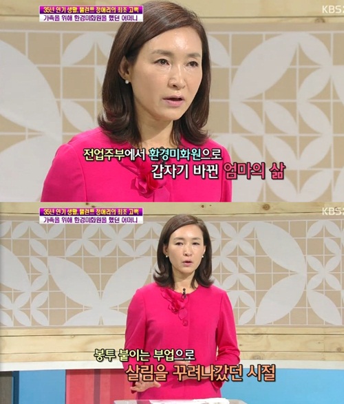 어린 시절 고백하기도 했는데요. 갑자기 어머니는 전업주부에서 환경미화원으로 일을 나가고 살림을 꾸리기 위해서 봉투 붙이는 부업을 하는 등 어머니가 고생하는 모습을 보고 자라 일찍부터 데뷔해 일을 하고 철이 일찍 들었던 것 같네요.