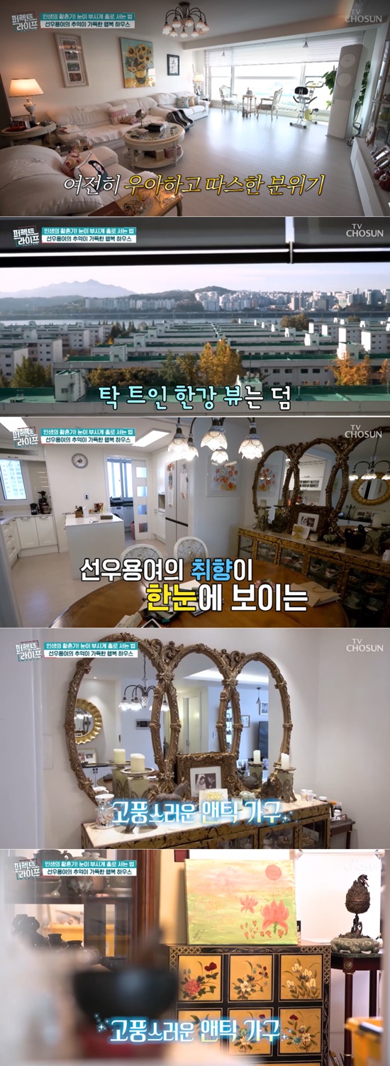 고풍스러운 엔틱 가수와 탁 트인 한강이 보이는 전마을 가진 뷰가 돋보이는 집.