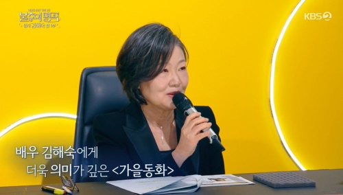 국민엄마는 물론이고, 영화 도득들에서 보여준 코믹 로맨스, 사극에서는 근엄한 대비마마로 카리스마 뽐내는 등 팔색조 연기력을 펼치며 국민배우로 거듭났는데요. 김해숙은 특히 자신에게 의미가 깊은 드라마로 가을동화를 꼽았습니다. 여주인공 엄마역을 하면서 그때 김해숙이라는 탤런트를 대중들에게 각인시킨 작품이 아니지 않을까 싶네요.