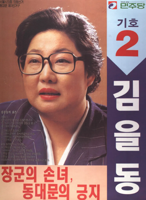 배우 김을동은 연예인 겸 제18대 19대 국회의원입니다. 집안에 유명인사가 많기로 유명합니다. 아버지가 야인시대 일대기의 실제인물 제3~6대 국회의원 김두한이며, 할아버지가 독립유공자 김좌진 장군이죠. 그리고 남편은 기업인이었으며 전 대통령비서실 공보관, 아들은 배우 송일국. 딸 송송이도 과거 배우의 길을 걸었습니다.
