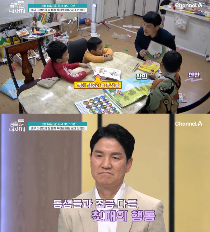 현재 만 8세, 만 6세, 만 4세 삼형제 육아 모습을 보여주었는데 큰아들은 책을 읽는 시간에 혼자서 알 수 없는 말을 하거나, 진지하게 책을 읽는 부분에서 산만하거나 폭소하는 행동 등 집중을 못하는 모습을 보였습니다.