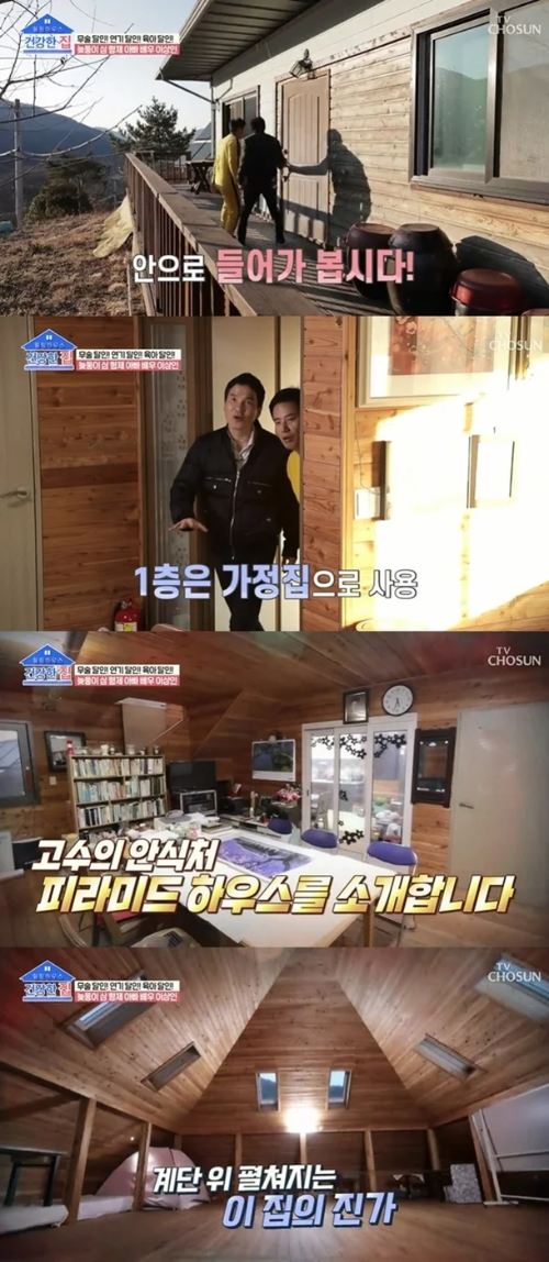 1층은 가족들이 함께 사용하는 가정집으로 쓰고 있으며, 계단을 통해 올라가면 천장이 나무 목재 소재로 피라미드 모양을 보여 이국적인 느낌을 물씬 풍기게 했습니다. 이상인 밀양에서 농사도 짓고, 현재 마케팅 회사 운영하는 사업가라며 근황을 전했습니다.